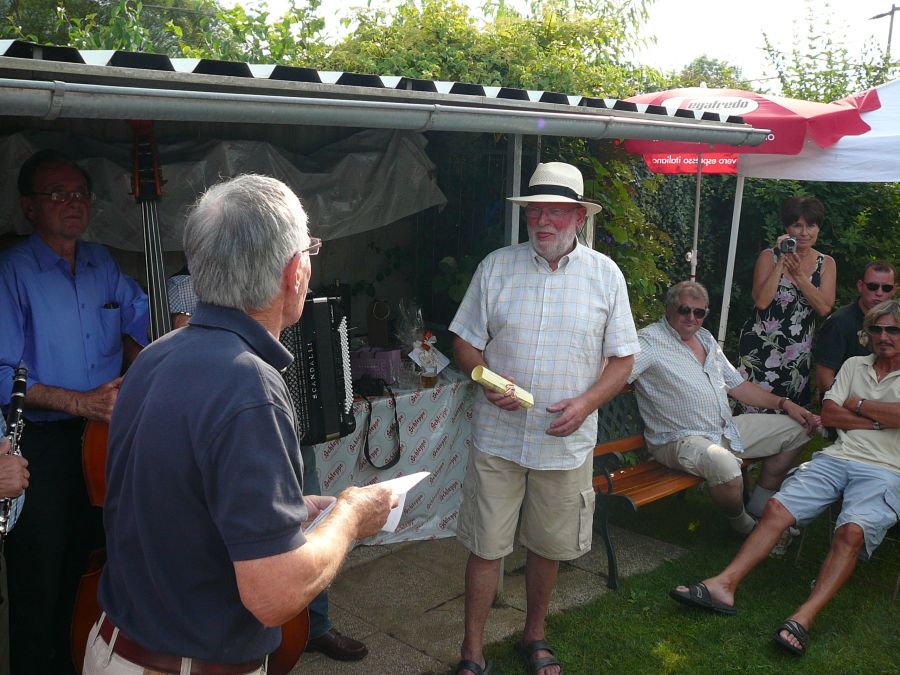 Walti im Kreise seiner Sängerfreunde in Lisboa als "Bänkelsänger"